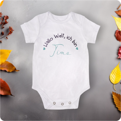 Weißer Kurzarm-Body für Babys. Gestalte für Deine Kunden das praktische Kleinkinder-Basic: ob als Geschenk zur Taufe, zum ersten Geburtstag oder bereits als Mitbringsel zu einer Baby-Shower-Party. Der beliebte Klassiker ist unverzichtbar für die ersten Lebensjahre und individuell gestaltet bleibt er ein Erinnerungsstück für das ganze Leben.